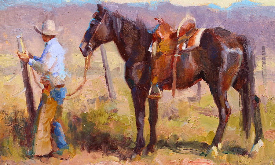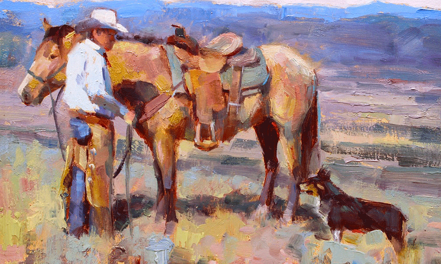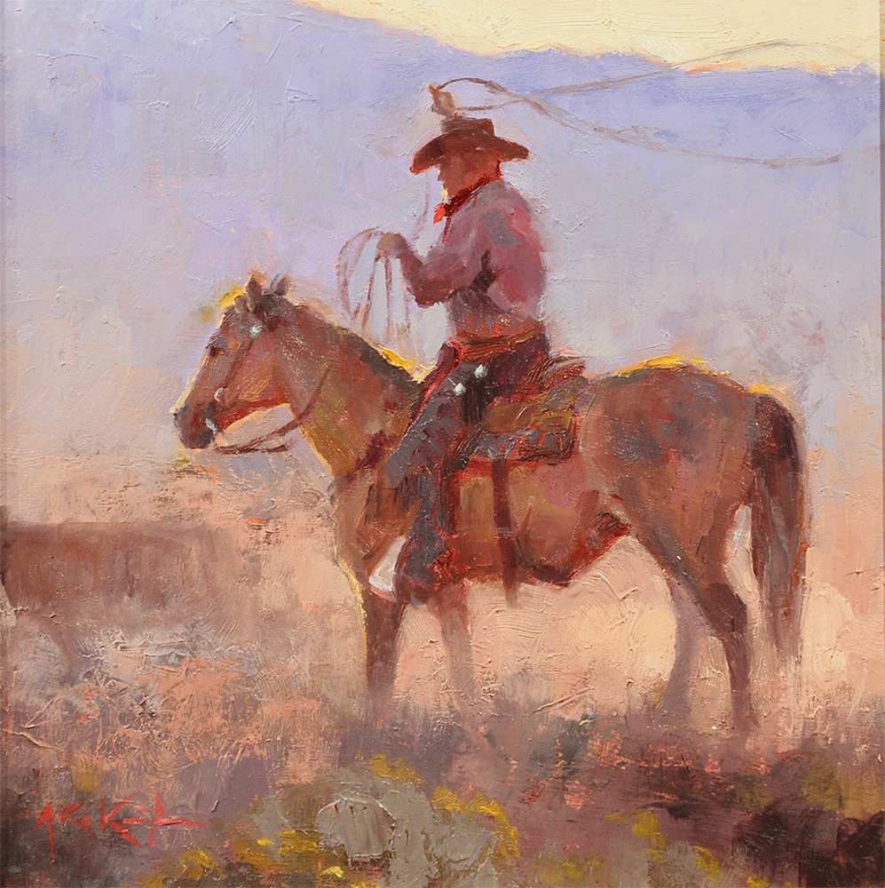Rick’s paintings are inspired by the land he knows and loves, as well as his deep ranching roots. His style ranges from loose, impressionistic brushwork rich in color, to pieces that showcase fine detail and realism. This variety allows him to capture both the emotional atmosphere and the subtle truths of the Western