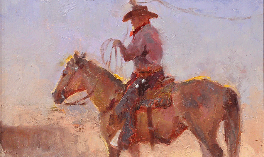 Rick’s paintings are inspired by the land he knows and loves, as well as his deep ranching roots. His style ranges from loose, impressionistic brushwork rich in color, to pieces that showcase fine detail and realism. This variety allows him to capture both the emotional atmosphere and the subtle truths of the Western experience.